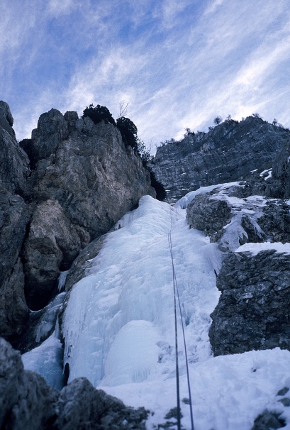 U nedjelju smo Vuković i ja popeli Levi slap, lijevom varijantom. Prava borba s otkopčanom derezom, trulim ledom, a na kraju i sa zapelim užetom pri abseilu. Nezgodno.