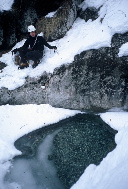 U Logarskoj dolini tmurni oblaci i snijeg sto na sat. Eto što je trebalo da napokon dođemo pod Gajstni slap i shvatimo da smo jedini. Za promjenu. No led se i nije mogao pohvaliti kvalitetom. U povratku odsolirali smo još Palenk, da vidim i to čudo kako izgleda...