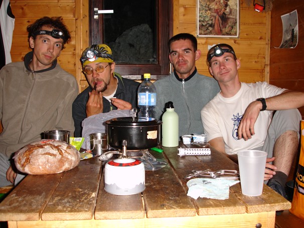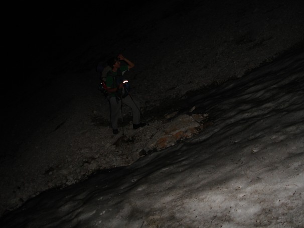 Kasni noćni polazak kroz Žmavčarje prema Bivku pod Skutom - Žac, Dinko, Kruno i ja. Bilo je zabavno, a gore smo stigli oko dva u noći. Bivak nas je dočekao prazan.