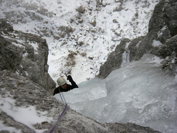 Drugi dan curke su otišle hodati, dok smo si Marko i ja dali oduška. Centralni slap pod Prisojnikom, u daleko od dobrim uvjetima, ali nakon prošle sezone kriteriji za "dobro" su mnogo niži.