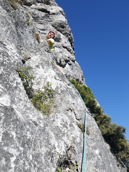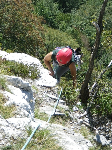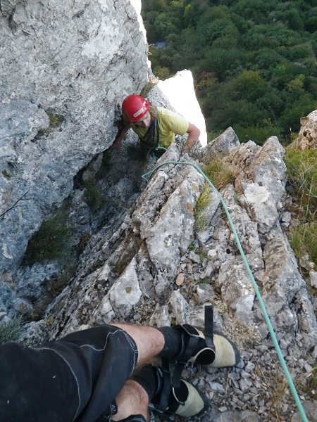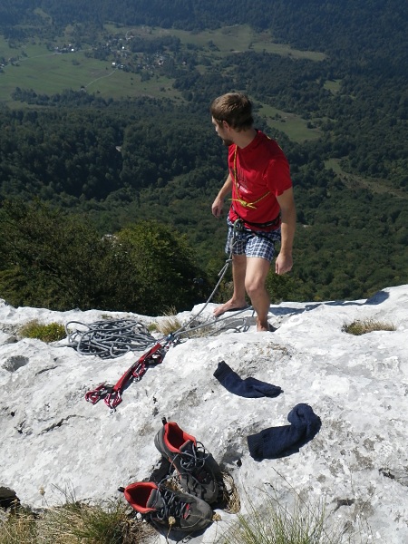 A onda je na red došao i Klek. S Klekom već zadnjih dosta škola nemamo sreće, uvijek pada kiša. Ali ne i ovaj put! Toplo ljetno sunce obasjalo je stijene, a tečajci dozorili i prezorili u svakakvim smjerovima. Lanu sam najprije proveo kroz Rodila majka šeprtlju, a potom i kroz Gitaru. Za kraj dana s Matijom sam popeo Glavu čime smo odradili svoje za subotu i zasluženo zaružili uz već poslovično izvrstan klečki roštilj i razne tekuće delicije.