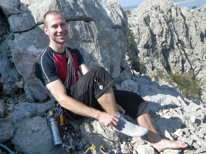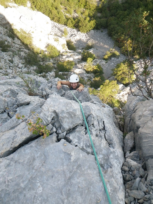 Business and pleasure u Paklenici. Uz sezonske sitne poslove oko kuće nađe se vremena i za penjanje. Josipa i ja popeli smo varijantu starog smjera u najsjevernijem grebenu Kuka Nožičara. Iznenađenje, IV/II, 140 m, naš doprinos za akciju "Tred nije bed".