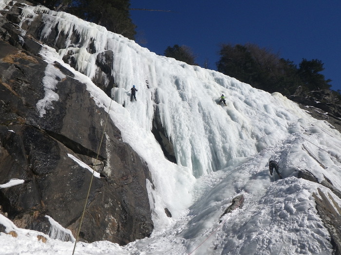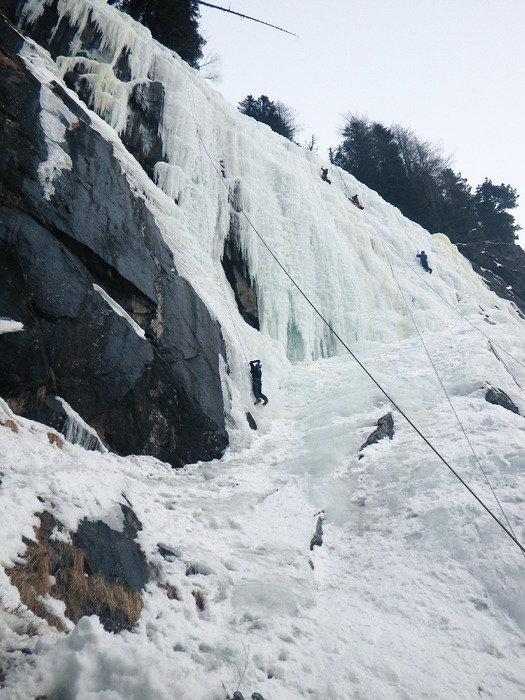Izlet zimske škole u Maltatal. Led smo jedva dočekali! Prvi dan Erceg i ja popeli smo i postavili top rope na Vorderer Maralmfalle. Dio polaznika ostao je tamo, dio dolje kod tunela, a vježbali smo tehniku penjanja i sidrišta u ledu.