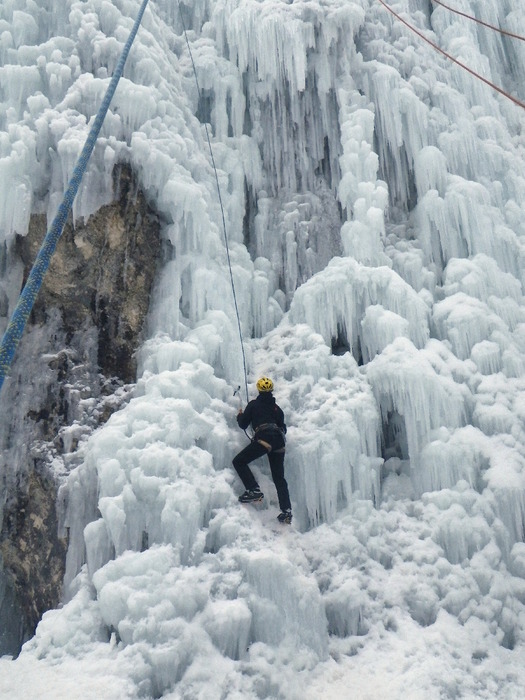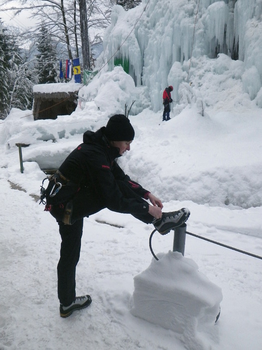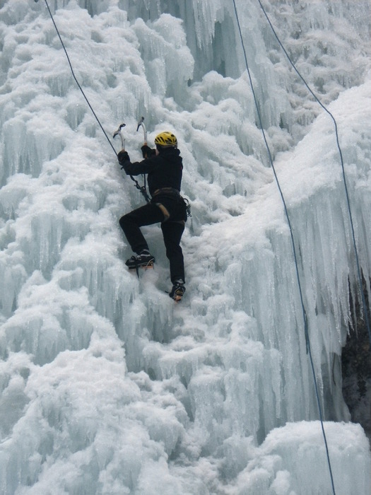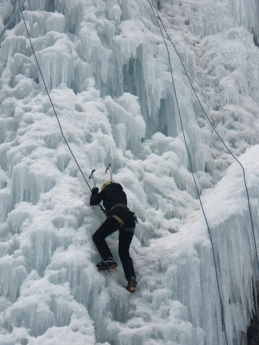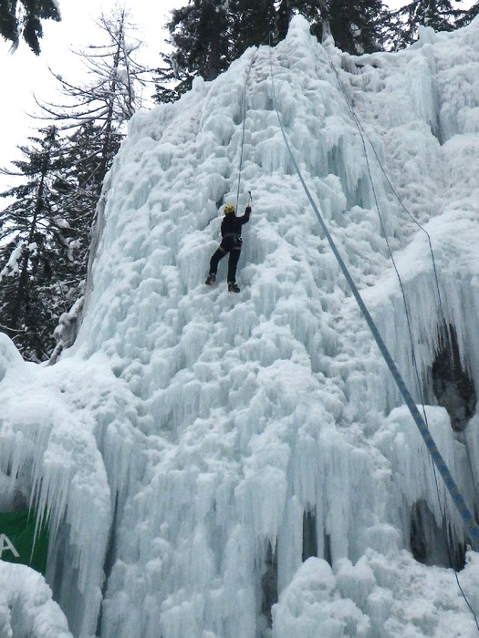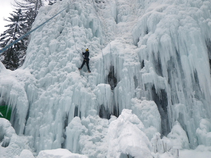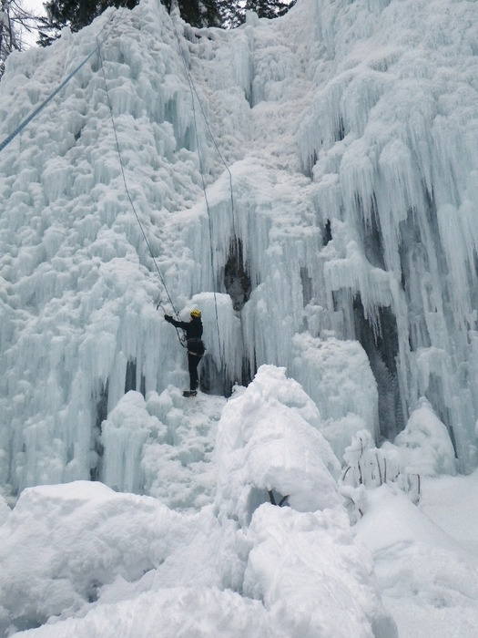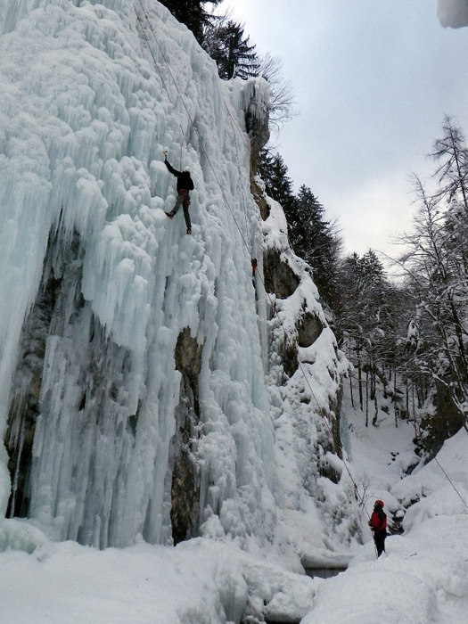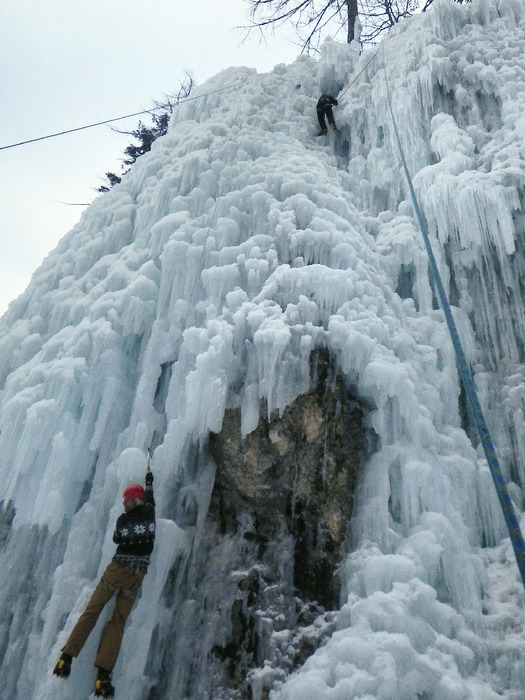 The first day of a four day ice trip with Kirsten. We had a great time on artificial ice walls in Mojstrana where we first worked on bare technique. The safety of top-rope is sine qua non when starting to ice climb. We focused on the swing and body positioning when moving on vertical ice.
