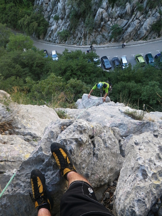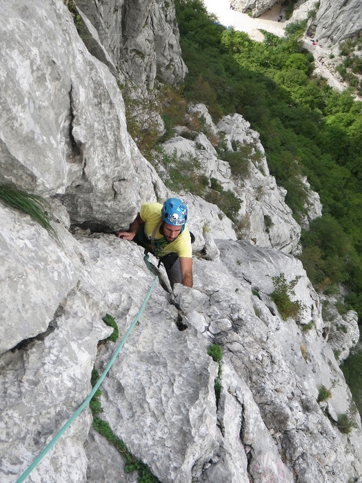 Škola u Paklenici – dan drugi. U nedjelju me dopao Toni. Valjda sam se zamjerio vođi izleta kad mi je dao tečajca koji Ča je od Draga je od Draga i Centralni kamin sredi za ukupno 2 i pol sata penjanja, :) fino. Ne stigneš se osvrnut i 300 metara je iza tebe.