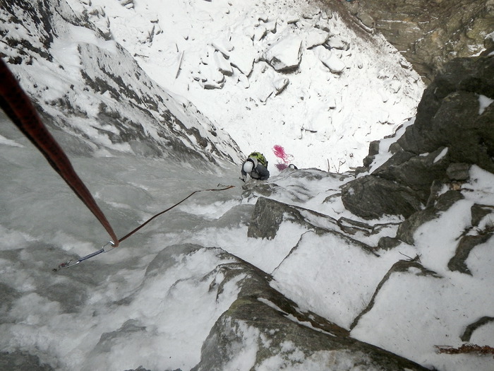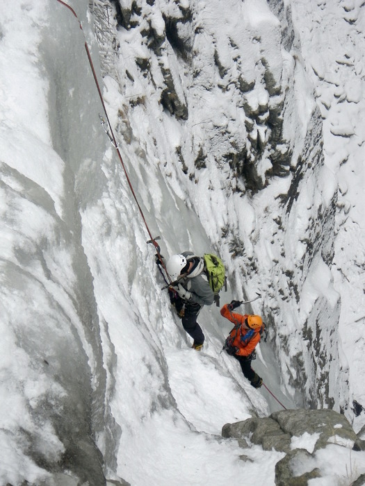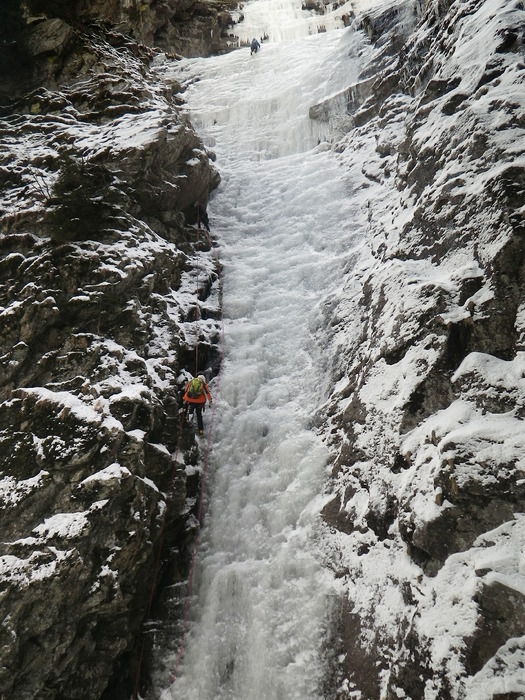 Treći dan trebalo je primijeniti naučeno. Ne baš idealni uvjeti u Maltatalu ipak su nam omogućili penjanje. Osmero polaznika škole i devet instruktora i asistenata pobrinuli su se da se dan jako dobro iskoristi. Hrvoje i ja te Sanda i Rene popeli smo slap Superfeucht – do gornje zavjese koja će pričekati neke hladnije dane.