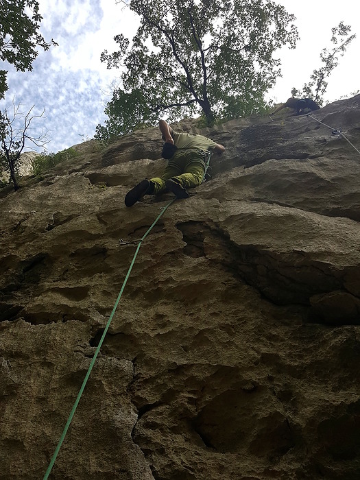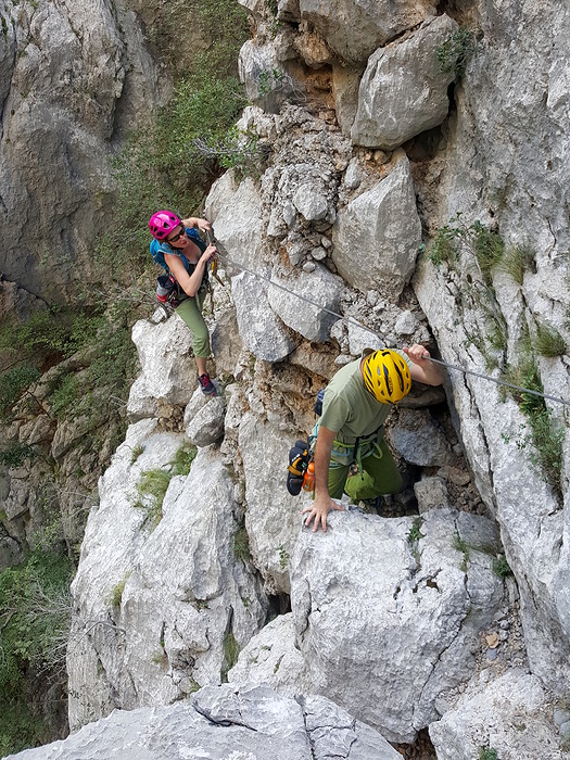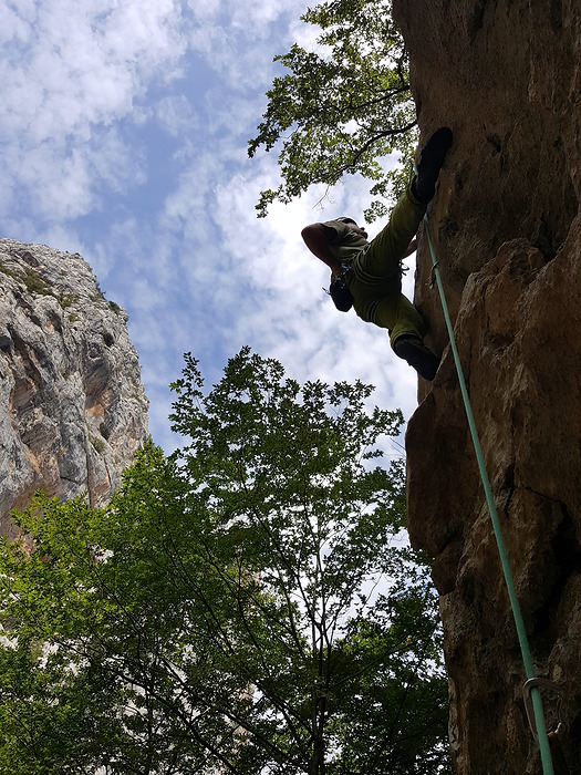 After approaching Centralni kamin Kirsten's stomach suddenly changed its mind. So we backtracked down to the gorge were she had some rest and recovery to do while Milan and I climbed single-pitch routes in the shade. A good deal of climbing, trying, falling and all together great effort!